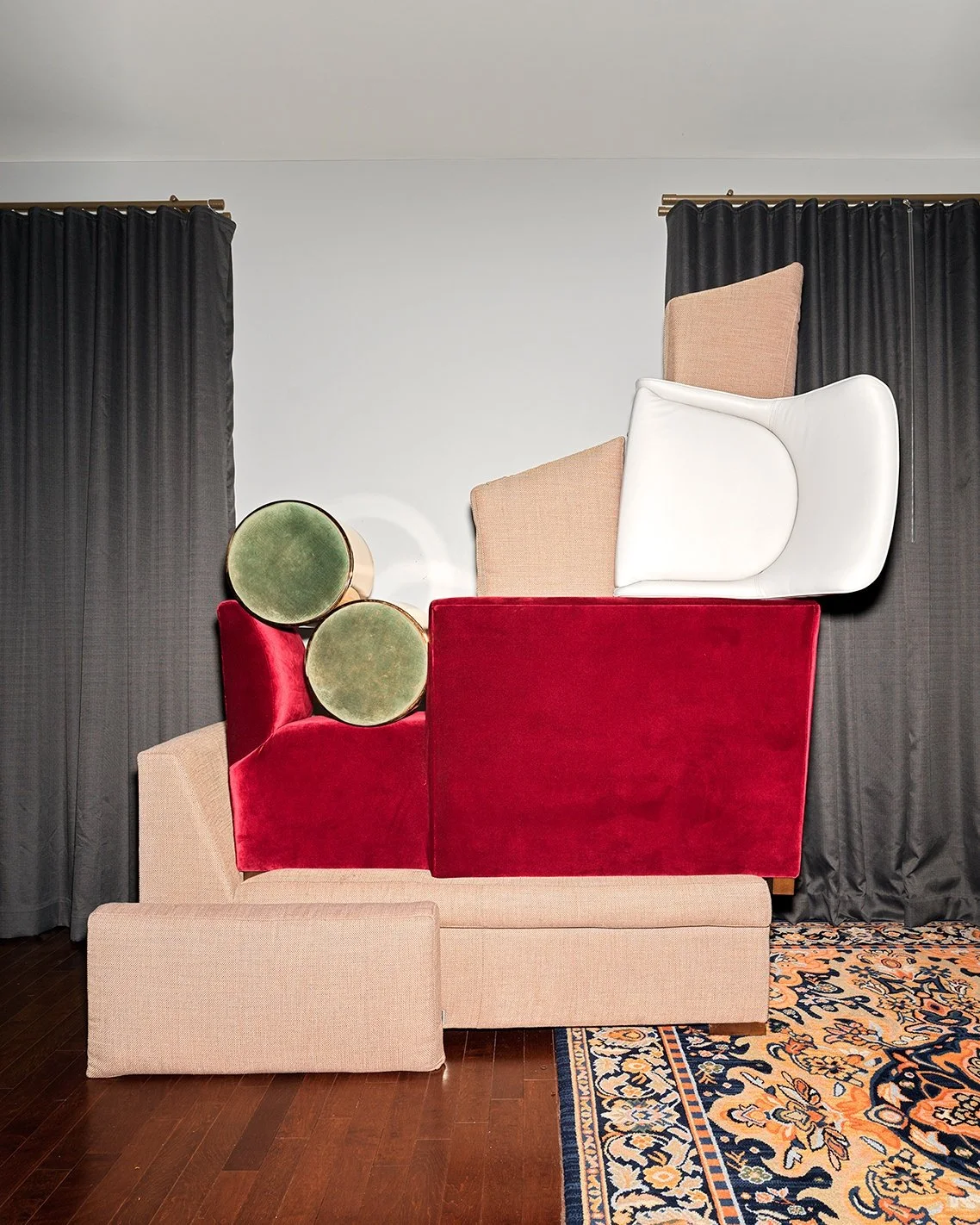 I just started making this work, arranging the furniture and photographing it as a creative outlet. Being separated from my studio, I had this need to do something creative. It wasn’t until I returned to New York, printed those images, and had the chance to really look at them as a small body of work, only about 12 pieces, that I began to realise there was something there. They had a quality that intrigued me over time. They weren’t just fleeting; they held my interest far longer than I expected. In many ways, they were more interesting than the paintings I was making, which was a surprise.