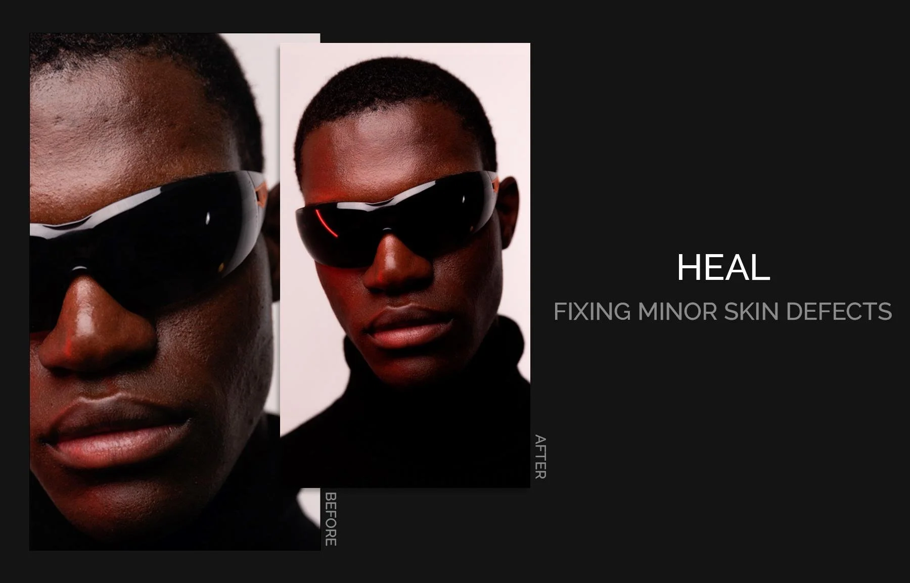 Starting with the Heal plugin: This tool automatically detects problem areas on the skin and corrects them while maintaining the skin’s texture, avoiding any over-smoothing effects.