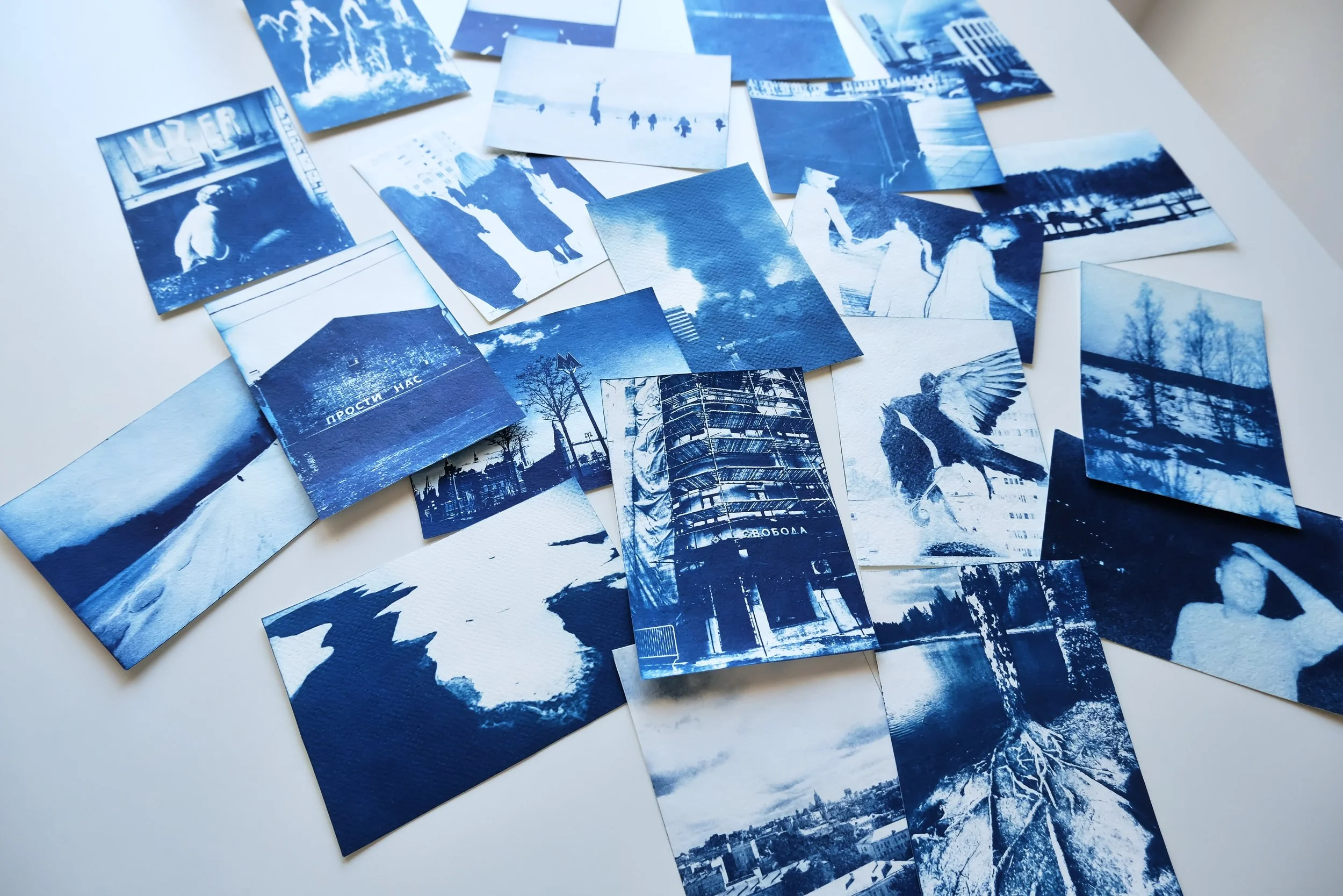 Working under the pseudonym Ida Anderson, she has created "Blue Valentines," a series of cyanotype postcards that capture Moscow in shades of melancholic blue. Each image tells a story of fractured love for a homeland that feels both familiar and forever altered. The postcards are meant to travel, connecting scattered communities of Russian emigrants who share this same sense of loss and longing for what they left behind.