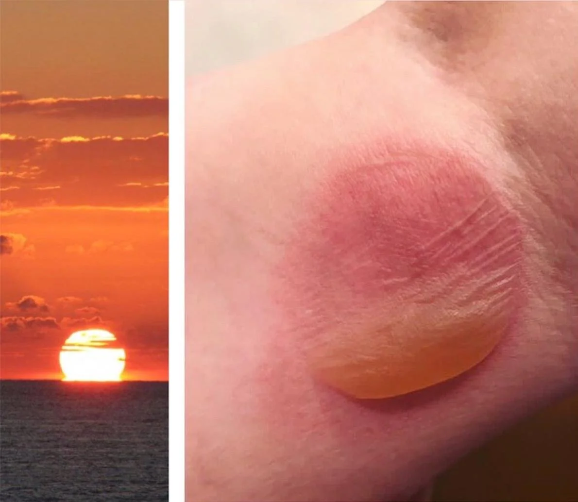 Your friend Nasim's photograph of the blister and sunset appears in your essay. Her image became important to your story even though it shows someone else's body. How did including another artist's work change how you think about your own photographs?