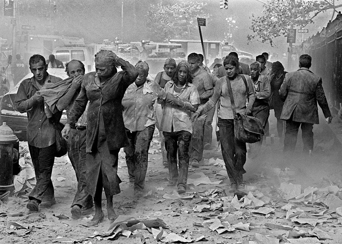 Gulnara: I didn't fully grasp the danger. I arrived so quickly that I didn't understand what kind of planes had hit or how dangerous the situation was. It never occurred to me that the buildings would collapse. I lived only four blocks away, so I reached the scene almost immediately. I was simply doing my job, photographing. The camera helped me separate myself from the tragedy, from the reality of what was happening. Viewing everything through the viewfinder helped me focus on the work. When the building collapsed, I was standing across the street. I thought I had died. I captured one frame of the building collapsing, and then everything went dark. I lost my hearing from the collapse. I couldn't hear or see anything. I genuinely believed I was buried alive. Then I began to see emergency lights, and my hearing gradually returned. When I realized I was still alive, I continued photographing. Afterward, I went home, mixed the chemicals, developed the film, and walked back to Associated Press.