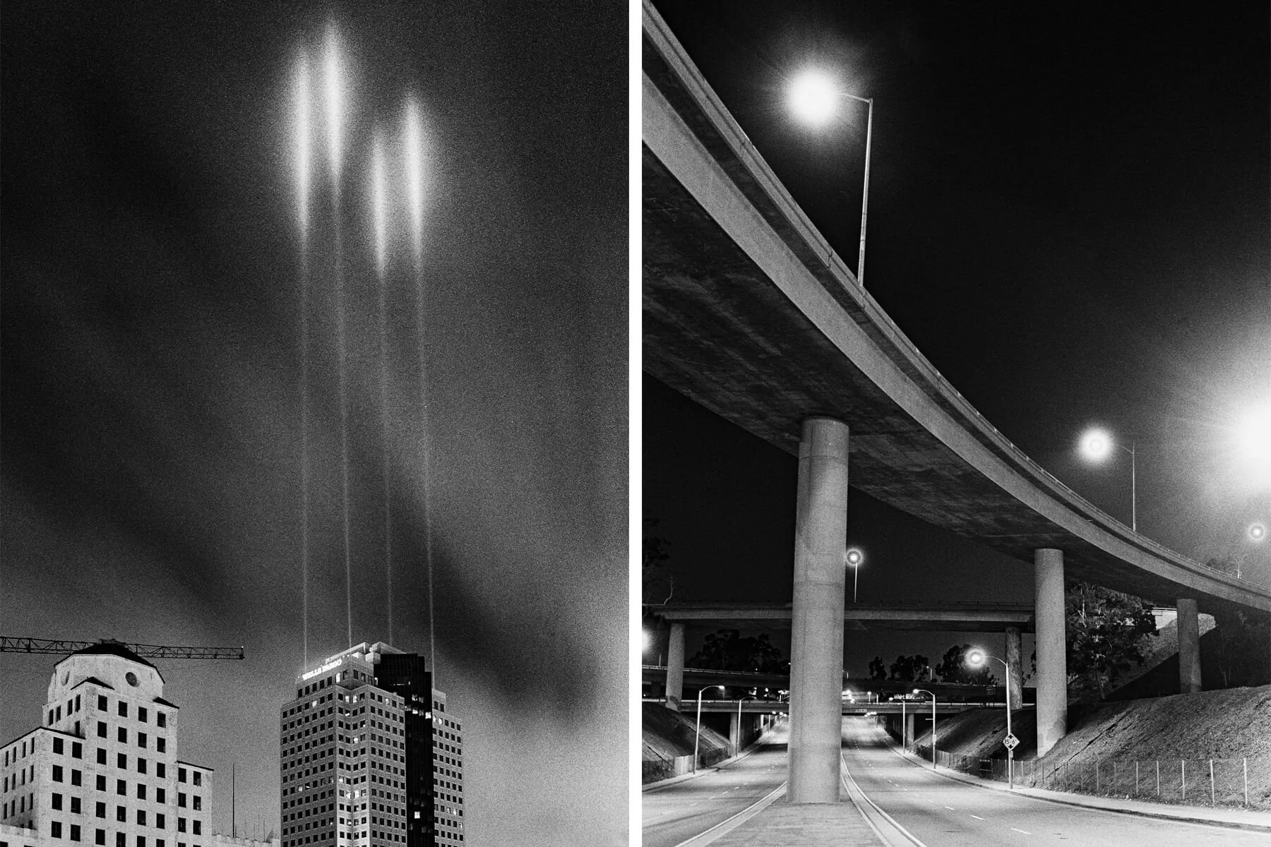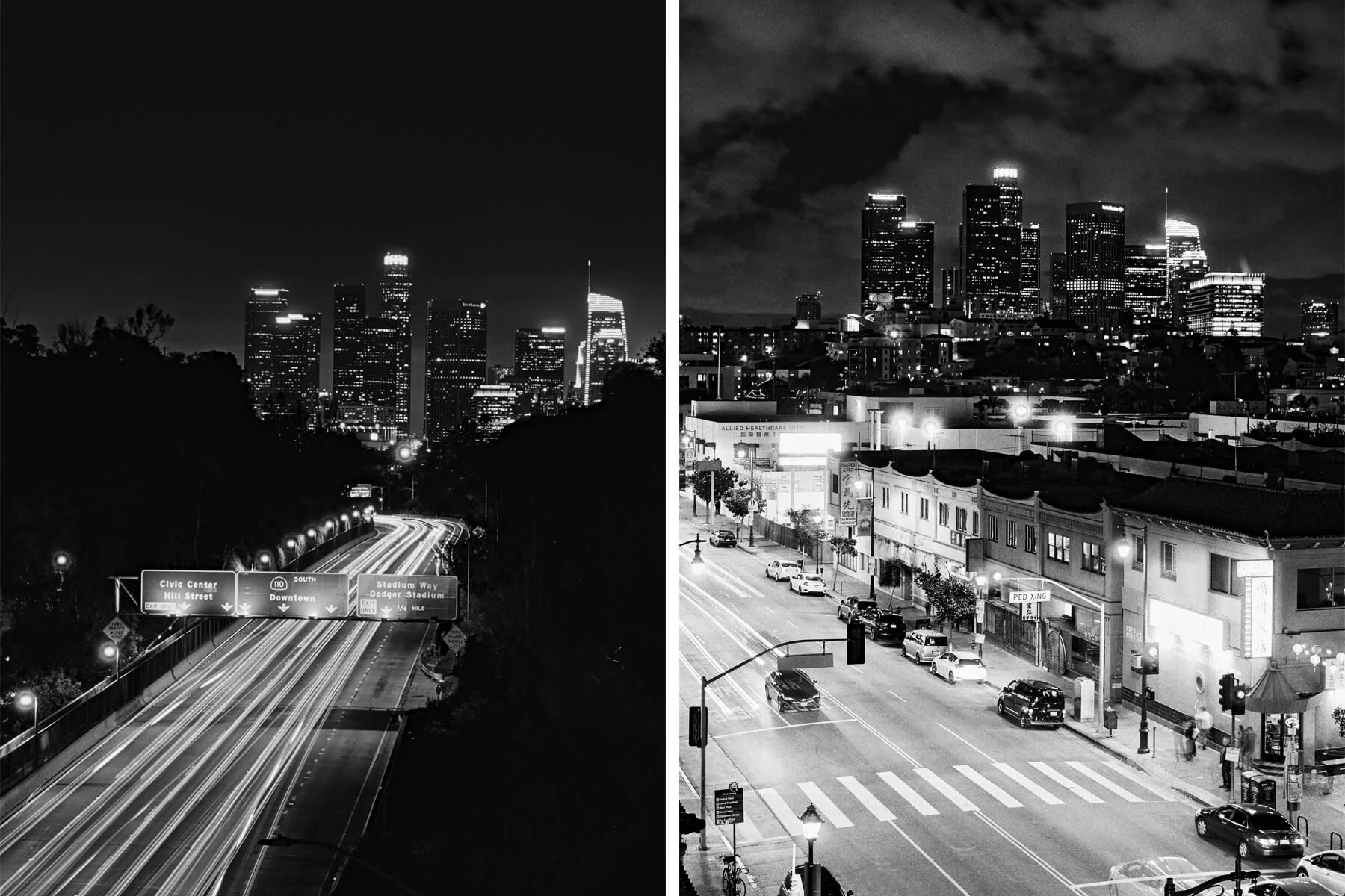 You said black-and-white film at night shows L.A. differently than digital. What exactly does film show that a digital camera misses? How does it change what you see?