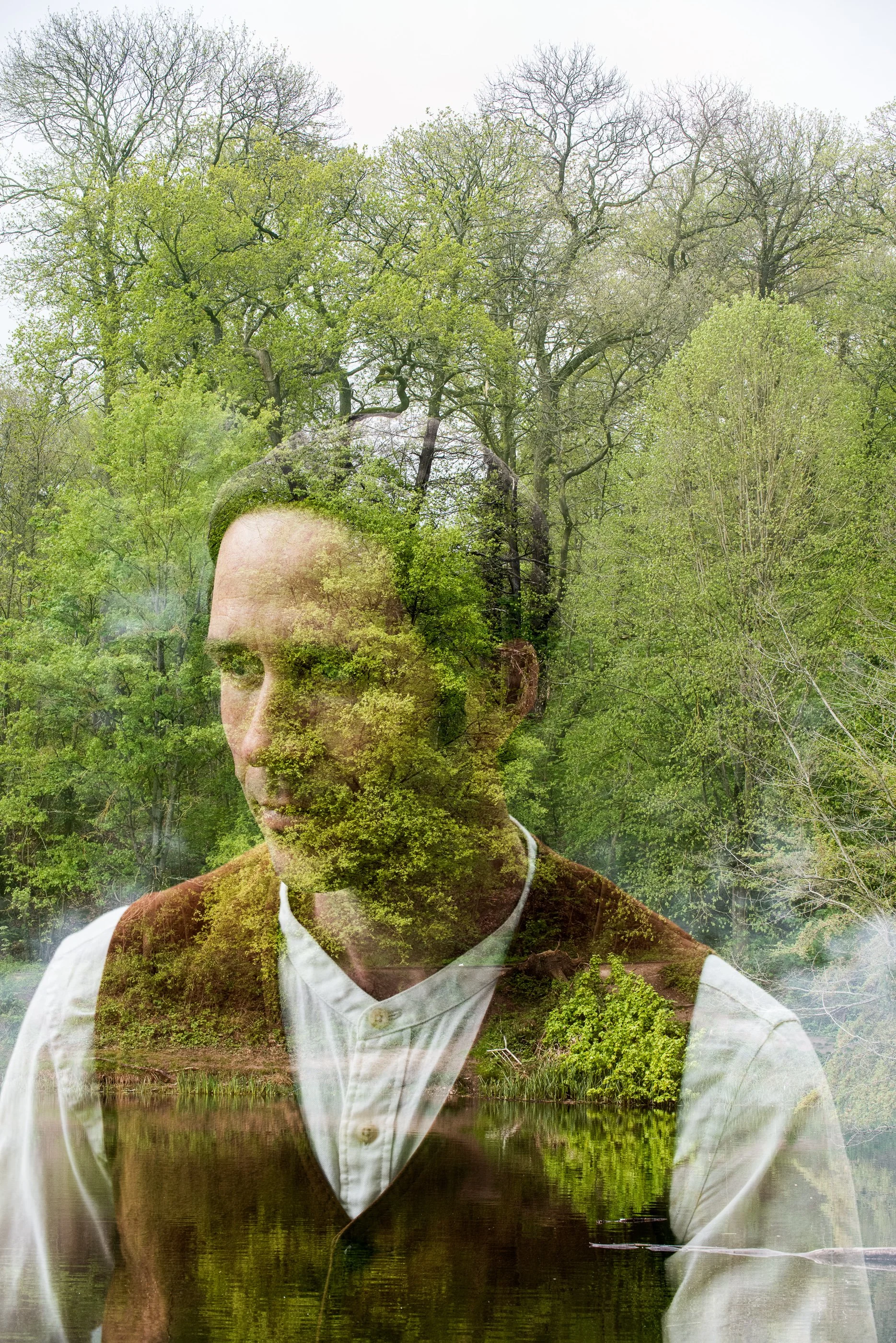 The magic happened inside the camera's sensor. The two images mixed together digitally. Seznec's face became see-through, and the green trees and moss seemed to grow through his skin. His eyes looked out from a face made of leaves and branches. The forest became part of him, and he became part of the forest.